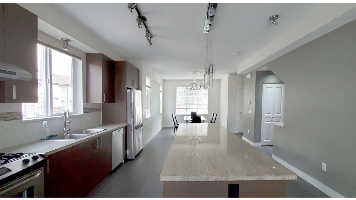 GREAT LOCATION Bright End-Unit Townhouse at the Wishing Tree by Polygon. Completely renovated 1381 total sq/ft over 3 levels, this open layout is perfect for comfortable living surrounded by large windows with plenty of natural light facing the greenbelt. 3 bedrooms with 3 full bathrooms to accommodate a family comfortably. A spacious kitchen with a large island, granite counter tops, stainless steel appliances and laminate flooring. Next to a greenbelt, very private and quiet. Centrally located with easy access to shopping, restaurants, parks and public transit.